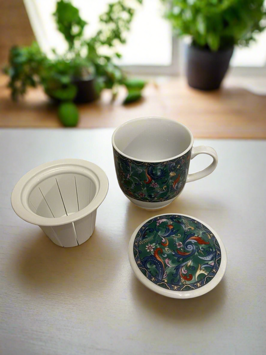 Pottery House Japan Vtg Tea Mug/Lid/Strainer