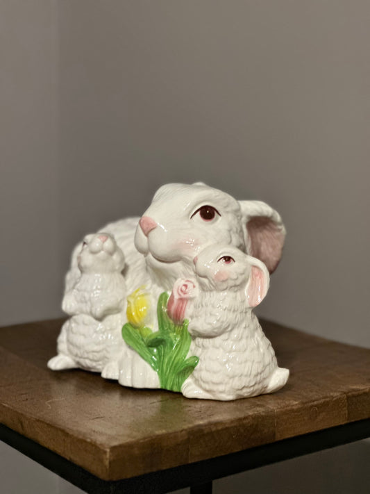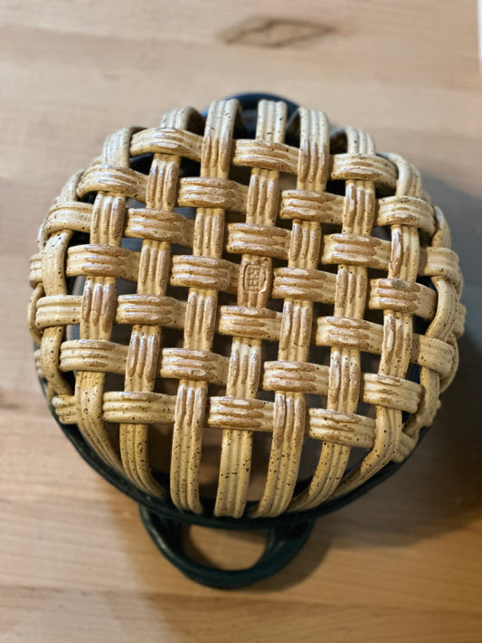 RH River Hill Pottery Woven Pottery Cottage Style Basket Blue Tan