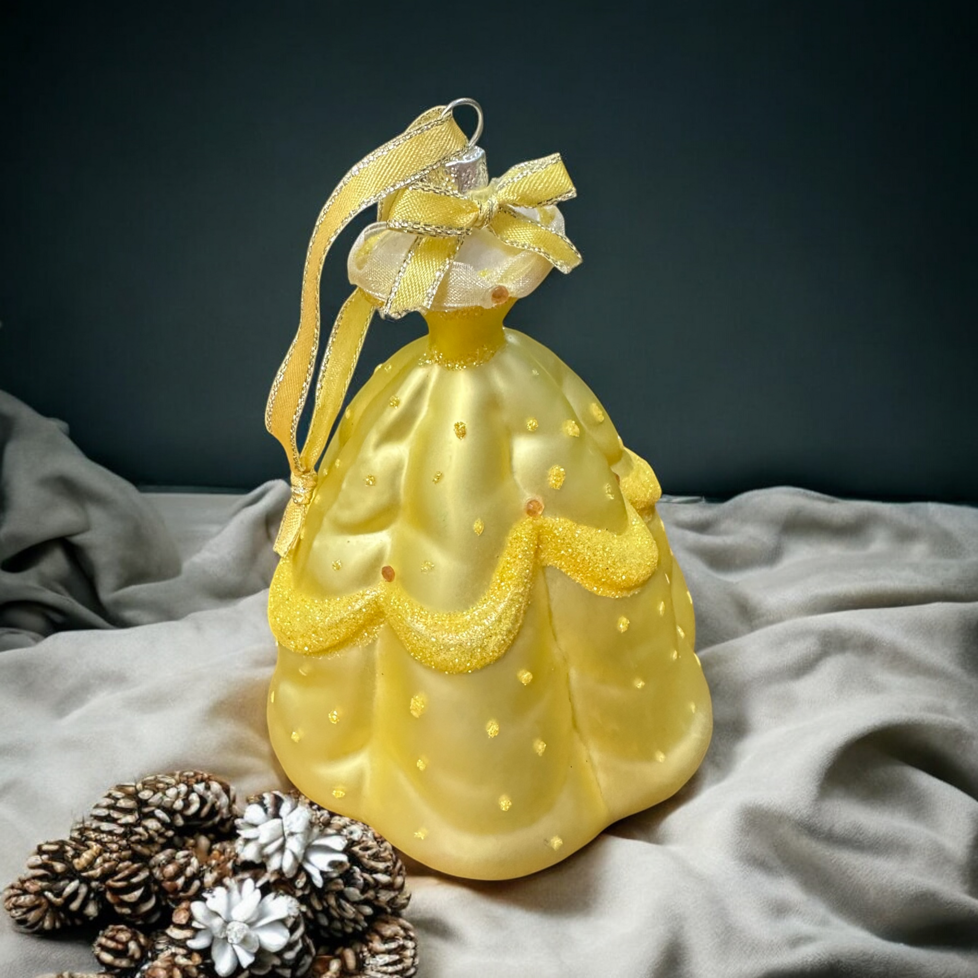 Disney blown glass Belle Princess Dress Yellow Ornament 6"