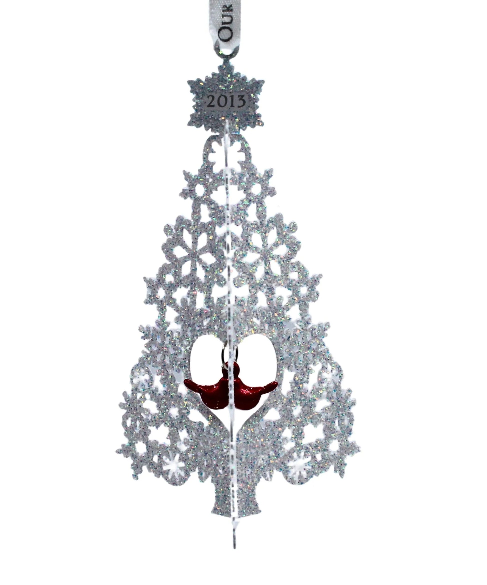 This elegant Christmas tree ornament with a pair of red birds dangling in the center commemorates "Our Christmas Together"