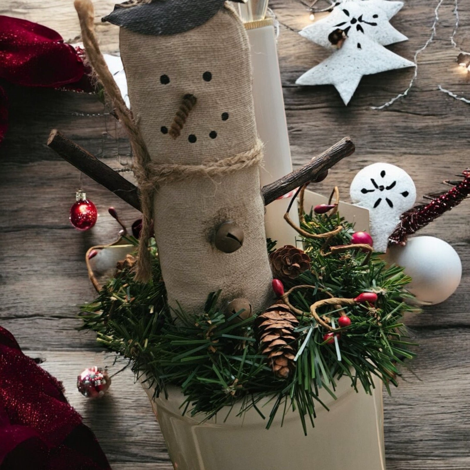 Snowman in Crock with light