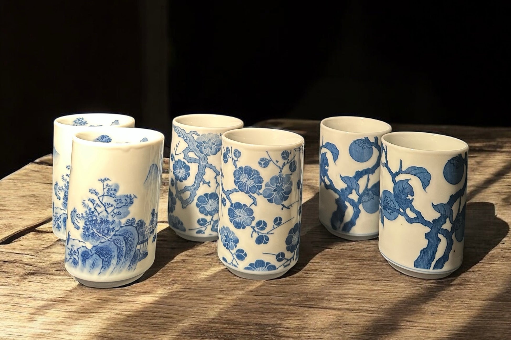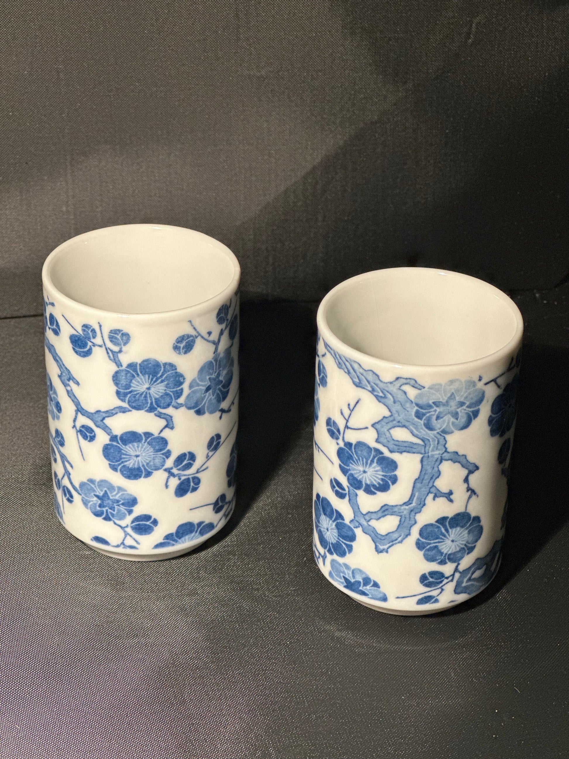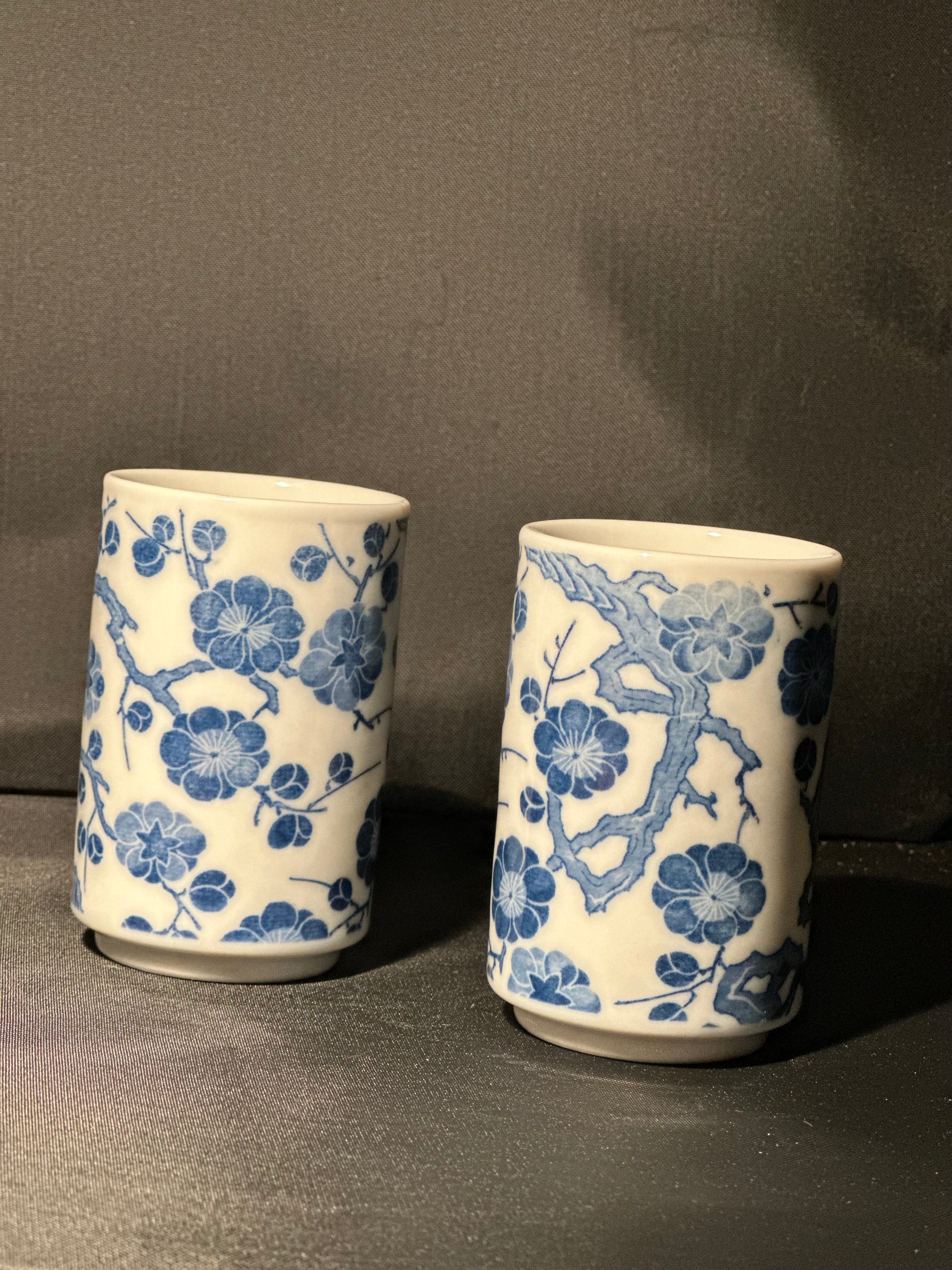 VTG OMC(Otagiri Mercantile Company) Japan Porcelain Tall Tea Sake Cups Blue White Floral