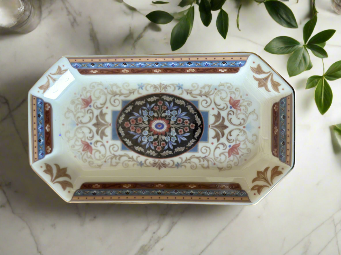 - It features an octagonal shape with a decorative floral pattern in the center.